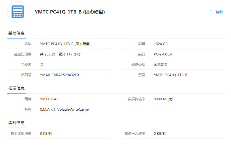 | 经检测 外观轻微磨损,无维修,硬盘使用117小时。 | |